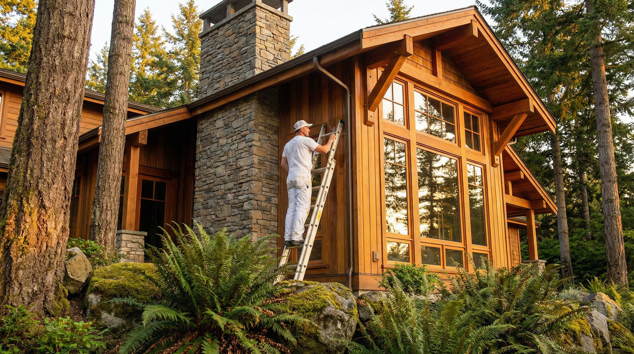 Vancouver Island's weather is beautiful — and unforgiving. We use premium exterior coatings that protect your home from the Pacific Northwest's rain, salt air, and UV, while making it look stunning for years to come.